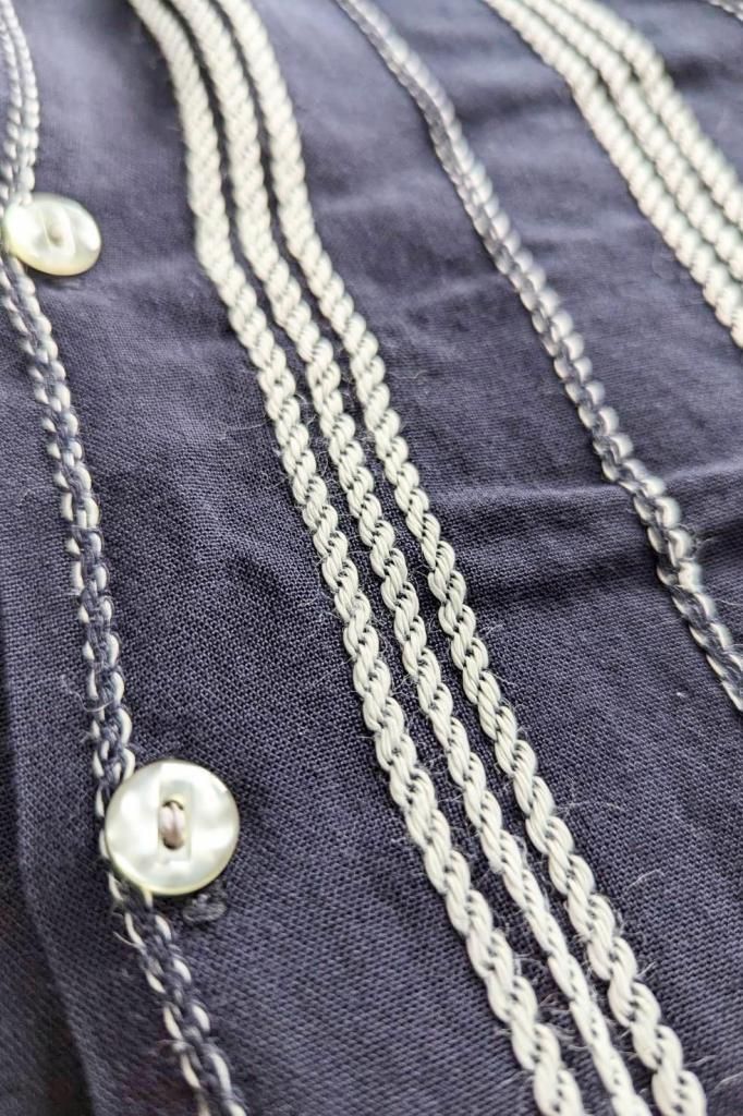編み織りが特徴的なオープンカラーシャツ