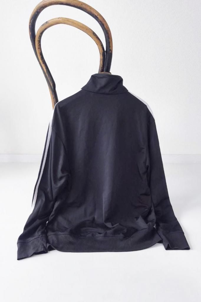 adidasのトラックジャケット。どんなスタイルにも合わせやすい王道のブラックボディに、アディダスの象徴であるスリーストライプスが映えるデザイン。